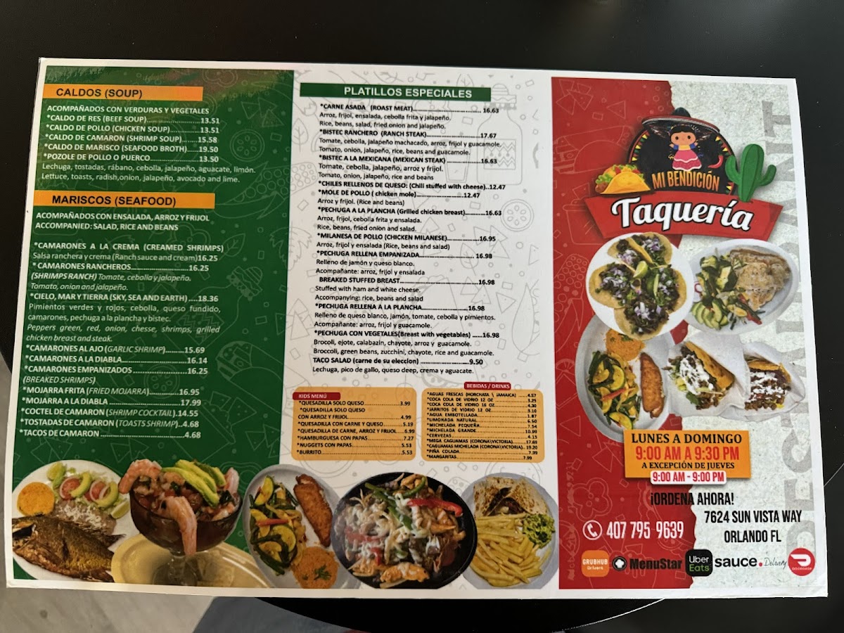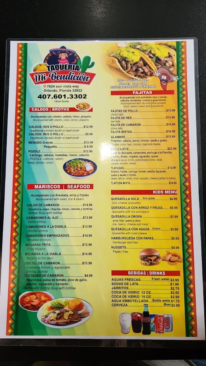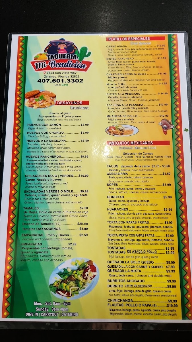 Welcome to Taqueria Mi Bendicion, a cozy gem nestled at 7624 Sun Vista Way, Orlando, FL. This taqueria has captured the hearts of locals with its authentic Mexican cuisine, as echoed by satisfied patrons. With a reputation for crafting some of the best tacos in town, it's a destination you won't want to miss.